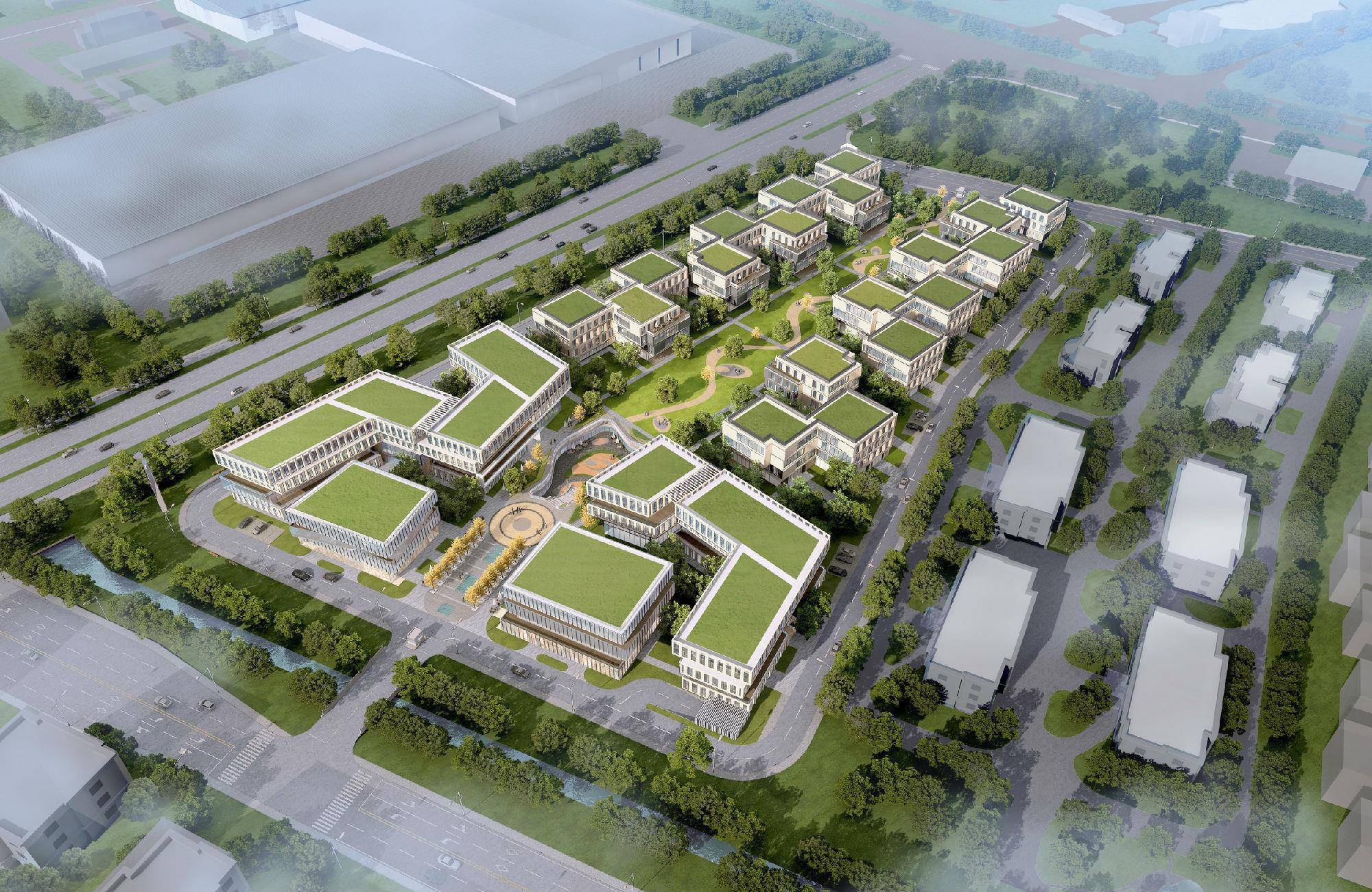 以“医疗大数据科技创新高地”和“智能医疗独角兽总部基地”为目标的上海智能医疗产业园突破低容积率狭长地块局限挑战,打造拥有私享院落、共享绿谷、智能园区、立体生态特点的多元的复合型智慧互动医疗产业园区。